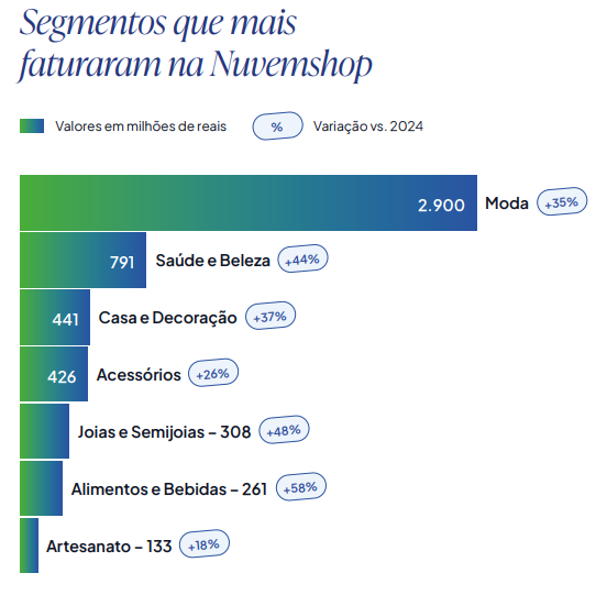 Esse destaque não é à toa, considerando que 20,8% das lojas que utilizam a plataforma Nuvemshop, a maior da América Latina com mais de 150 mil lojistas, pertencem a esse segmento.